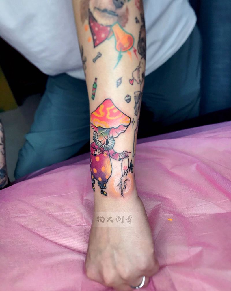 当前位置: 首页 >云南省昆明市纹身店-猫又刺青纹身图案>原创图稿蘑菇精灵纹身图片_手臂New School纹身图案