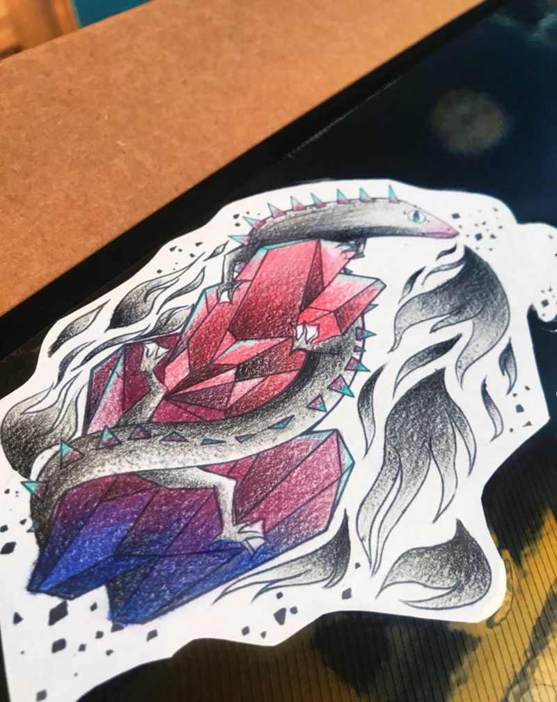 • T网红王老大花腿龙纹身图片_腿部新传统纹身图案
