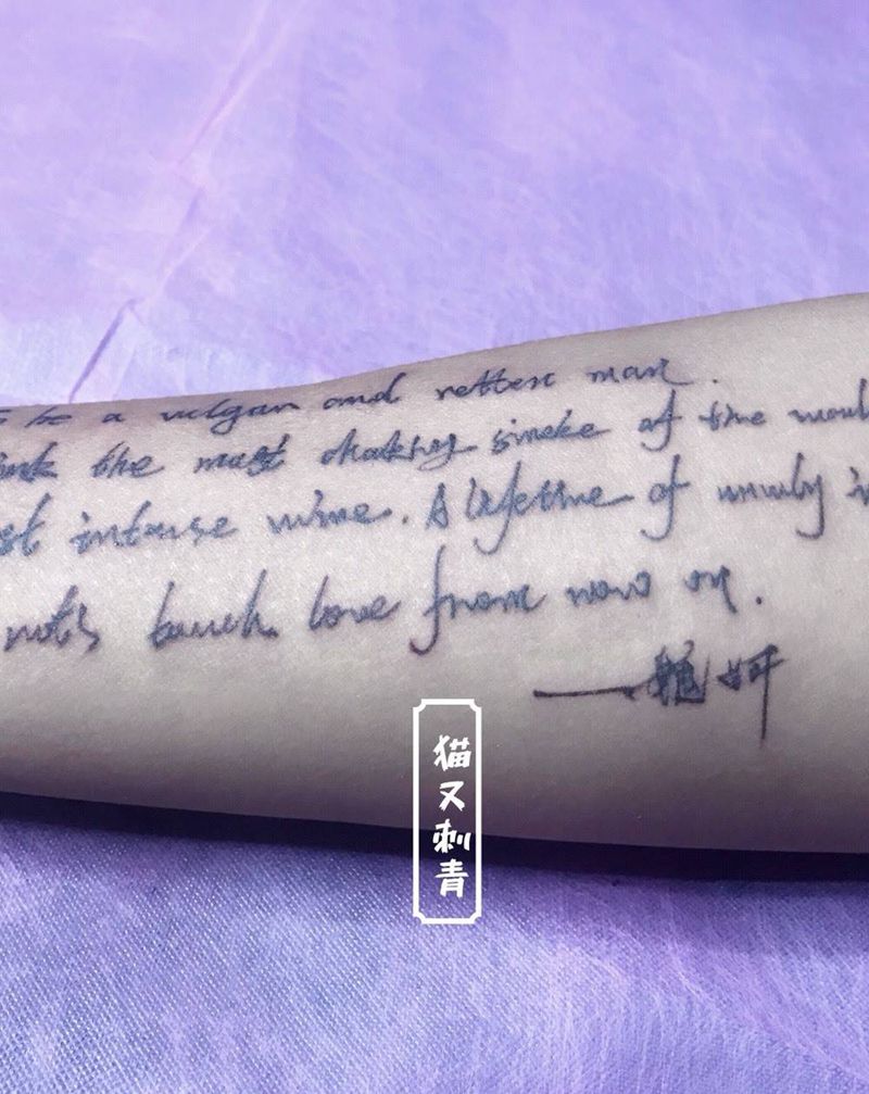 当前位置: 首页 >云南省昆明市纹身店-猫又刺青纹身图案>客人手写英文纹身图片
