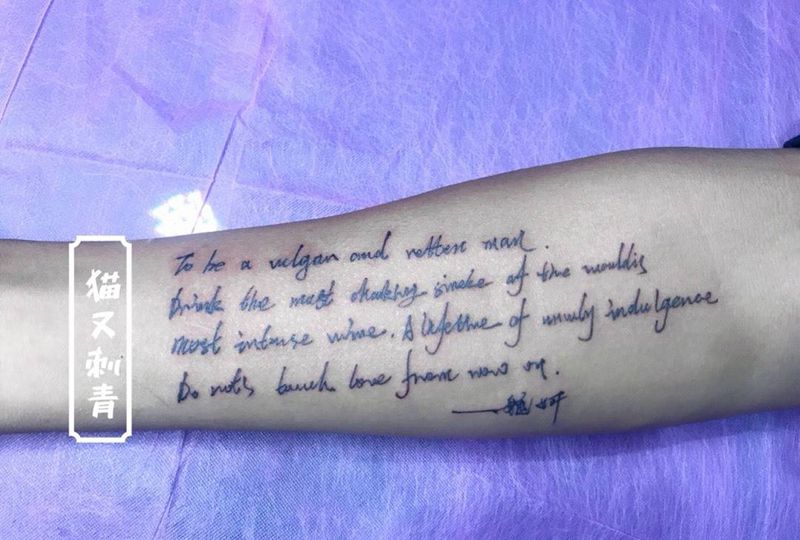 当前位置: 首页 >云南省昆明市纹身店-猫又刺青纹身图案>客人手写英文纹身图片