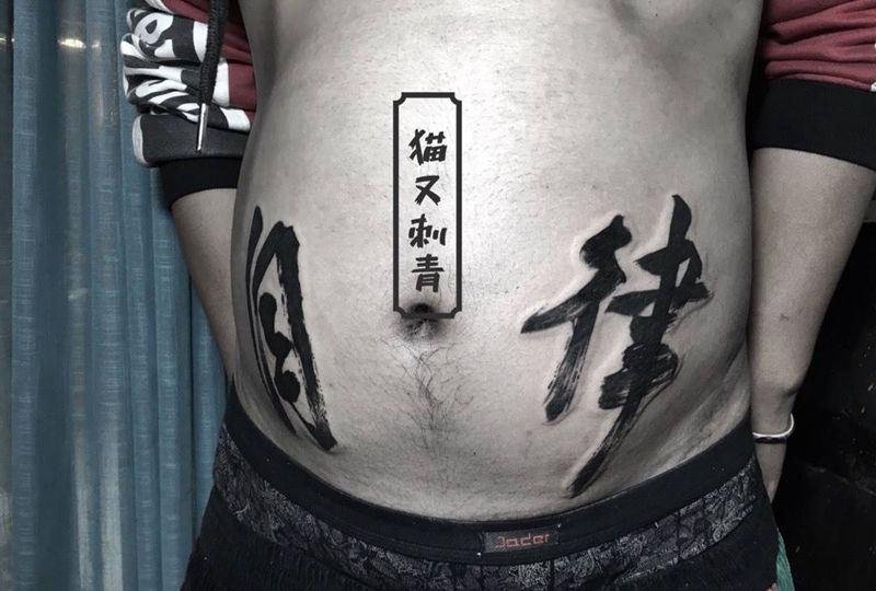 • T关于私处得爱!纹身图片_成品腹部清新字符图腾纹身图案