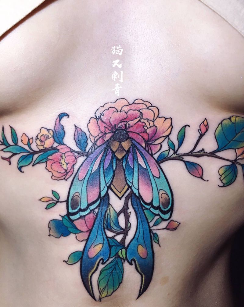 • 女性大花胸纹身_43张霸气漂亮的女性大花胸纹身图案作品