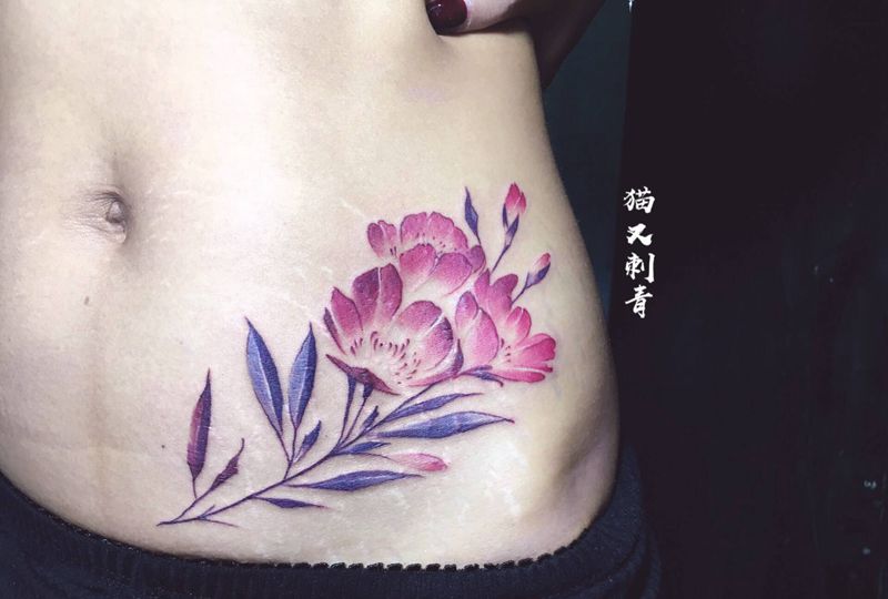 好疼好疼位置纹身图片_腹部纹身图案
