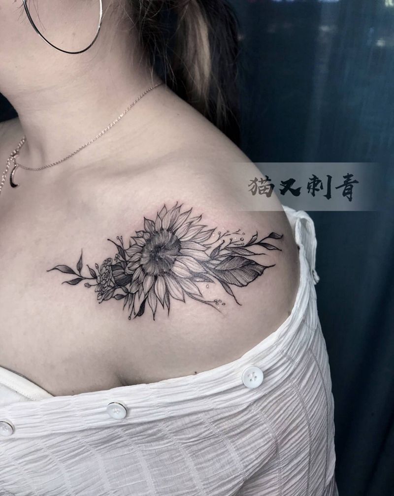 • 女性大花胸纹身_43张霸气漂亮的女性大花胸纹身图案作品