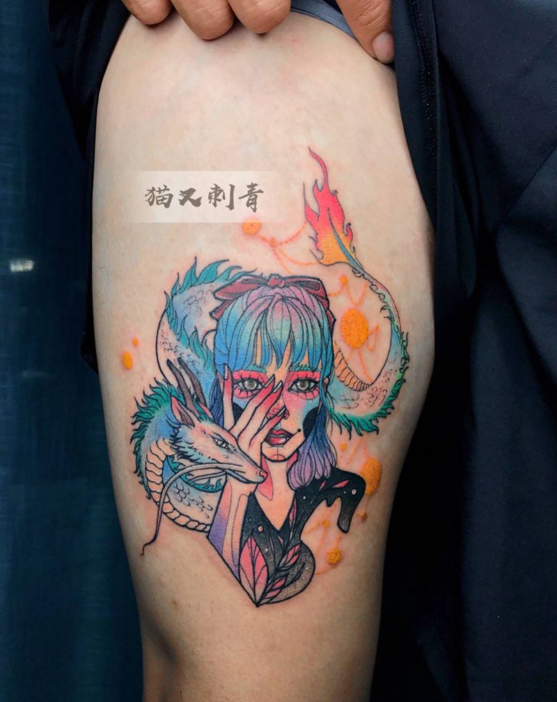 • T网红王老大花腿龙纹身图片_腿部新传统纹身图案