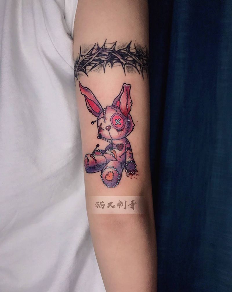当前位置: 首页 >云南省昆明市纹身店-猫又刺青纹身图案>原创甜丧纹身图片_手臂New School纹身图案
