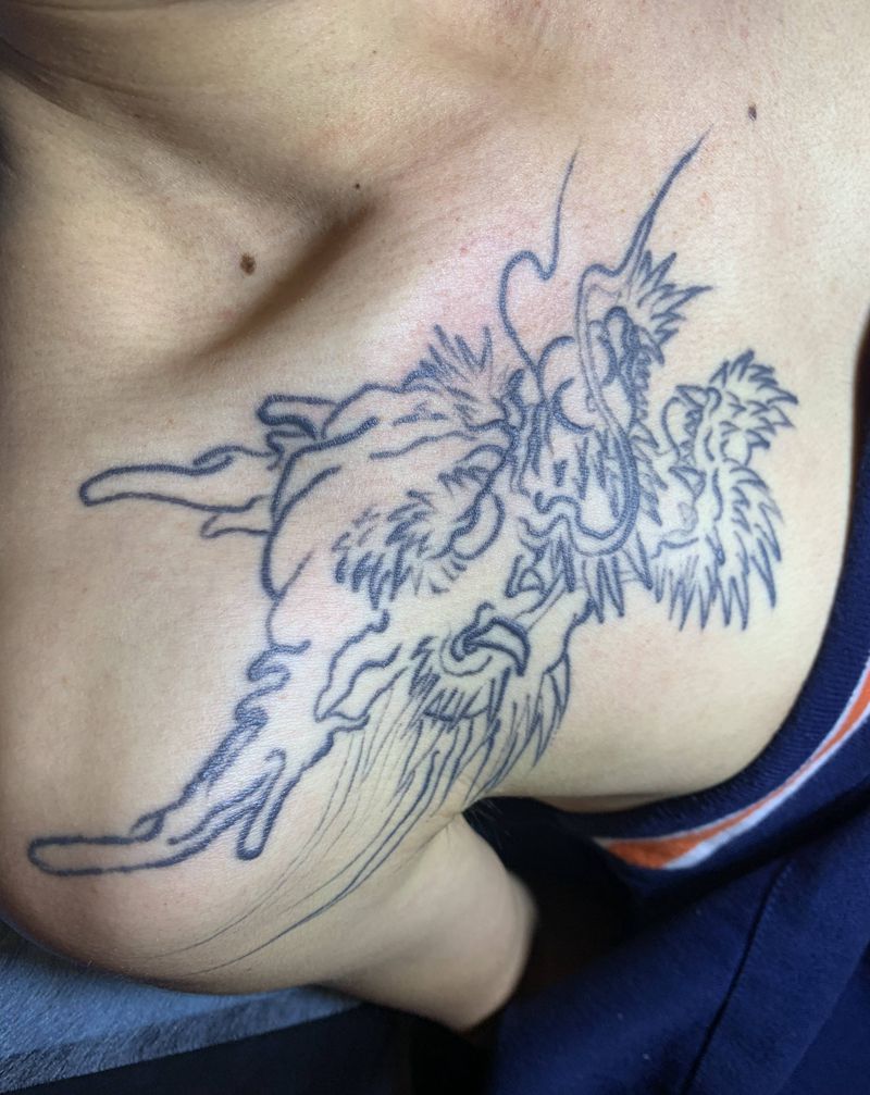 皮秒洗纹身纹身图片_胸部老传统纹身图案