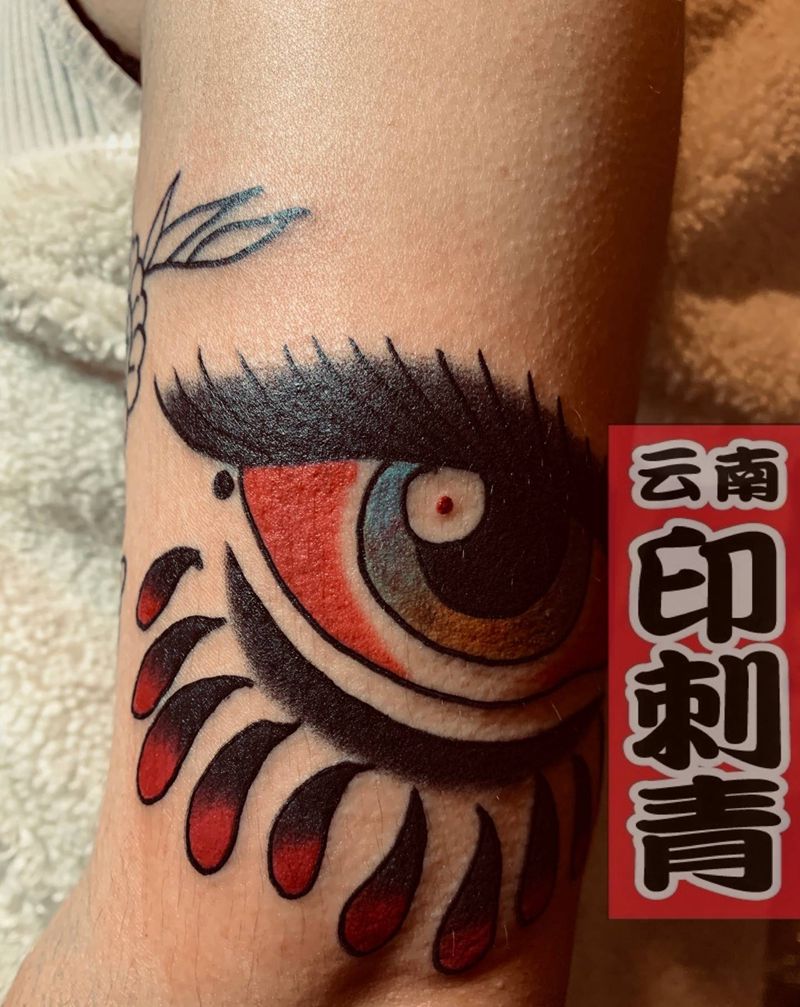 • 手背潮流时尚的玫瑰花眼睛纹身图案