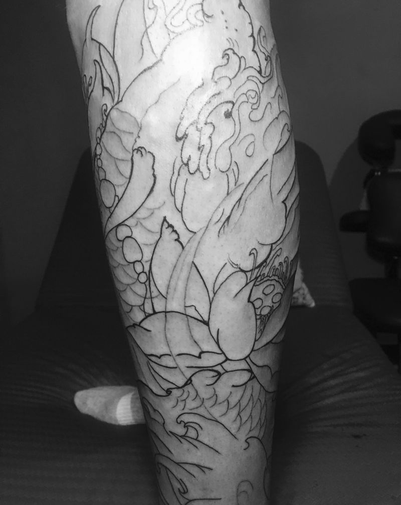 • T网红王老大花腿龙纹身图片_腿部新传统纹身图案