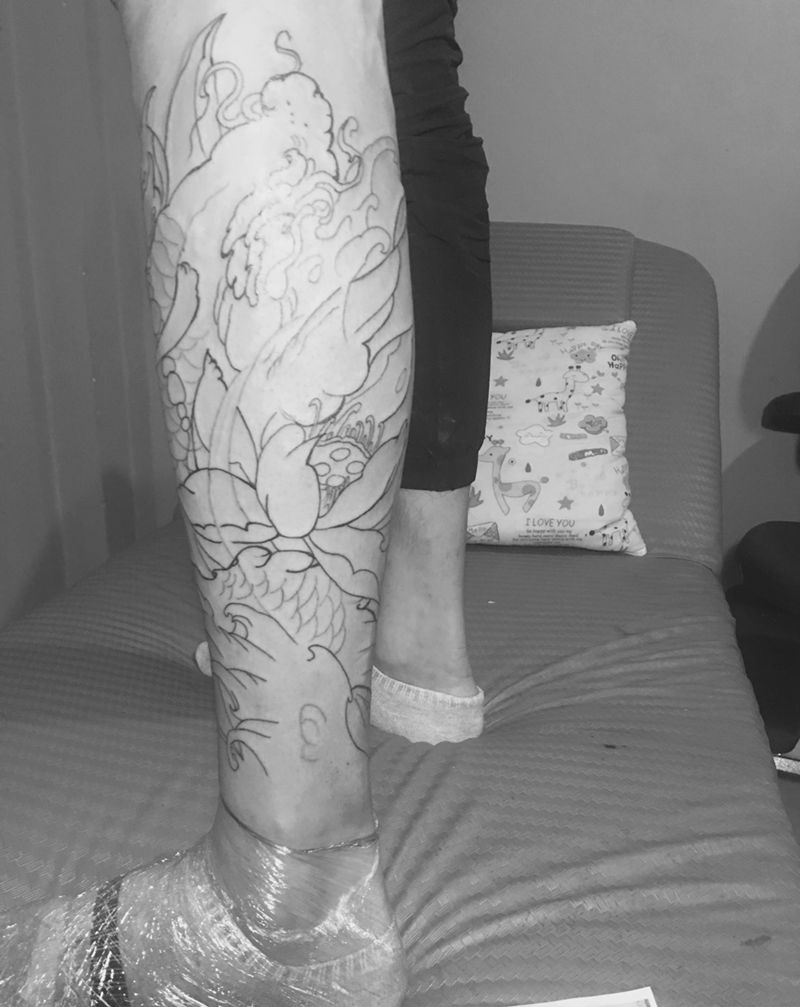 • T网红王老大花腿龙纹身图片_腿部新传统纹身图案