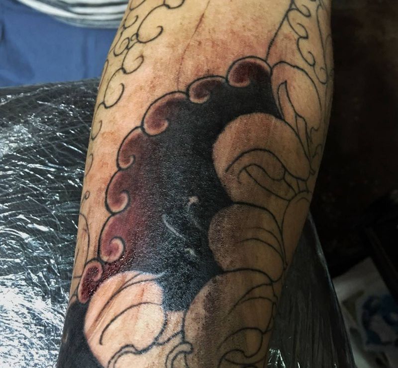 • T网红王老大花腿龙纹身图片_腿部新传统纹身图案