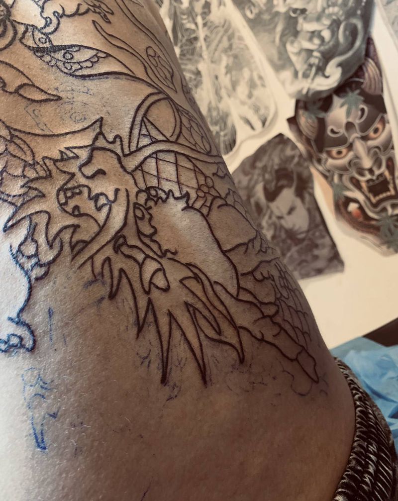• T网红王老大花腿龙纹身图片_腿部新传统纹身图案