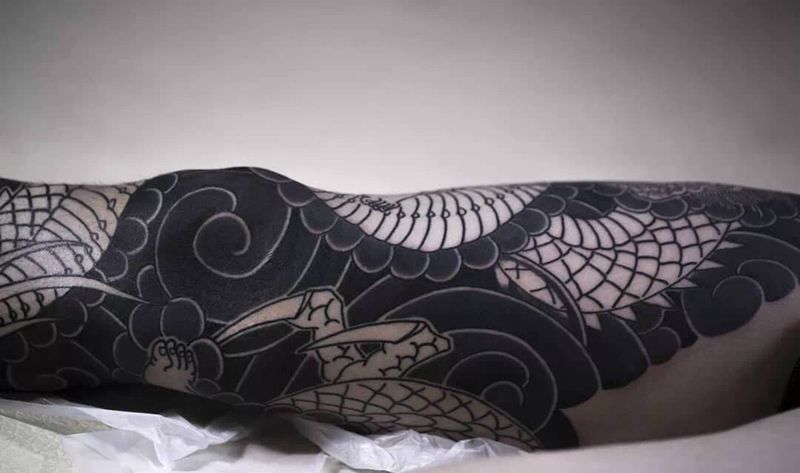 黑灰满背纹身图案
