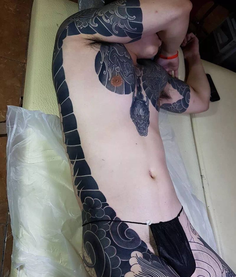 • T网红王老大花腿龙纹身图片_腿部新传统纹身图案