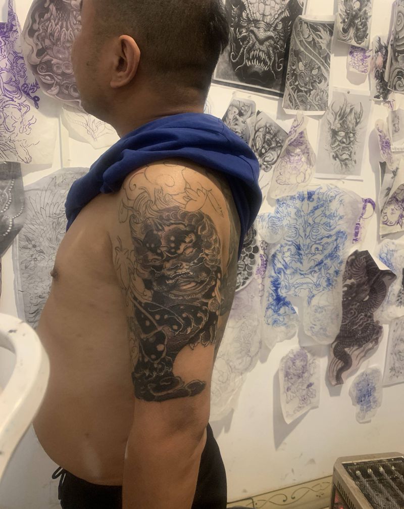当前位置: 首页 >云南省曲靖市纹身店-针匠刺青纹身图案>唐狮大臂纹身图片_手臂新传统纹身图案