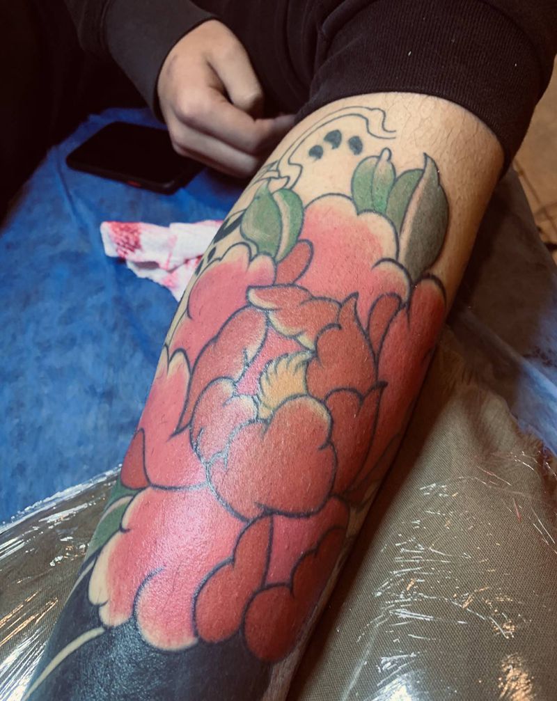 • T网红王老大花腿龙纹身图片_腿部新传统纹身图案