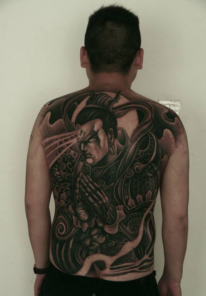 黑灰满背纹身图案