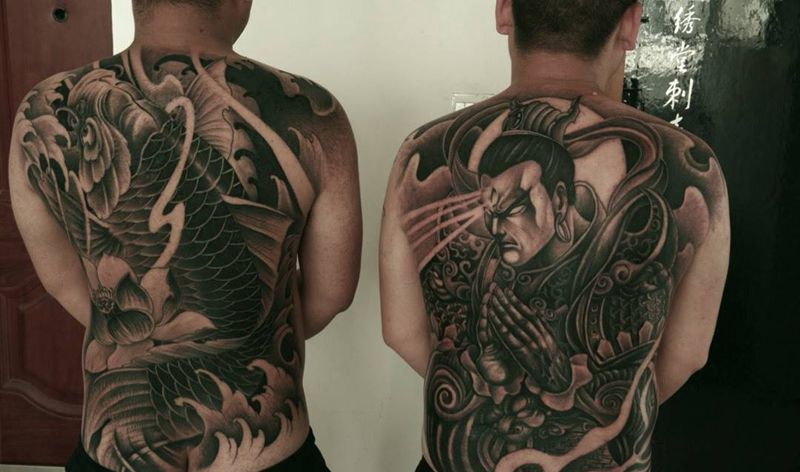 • 黑灰满背纹身图案