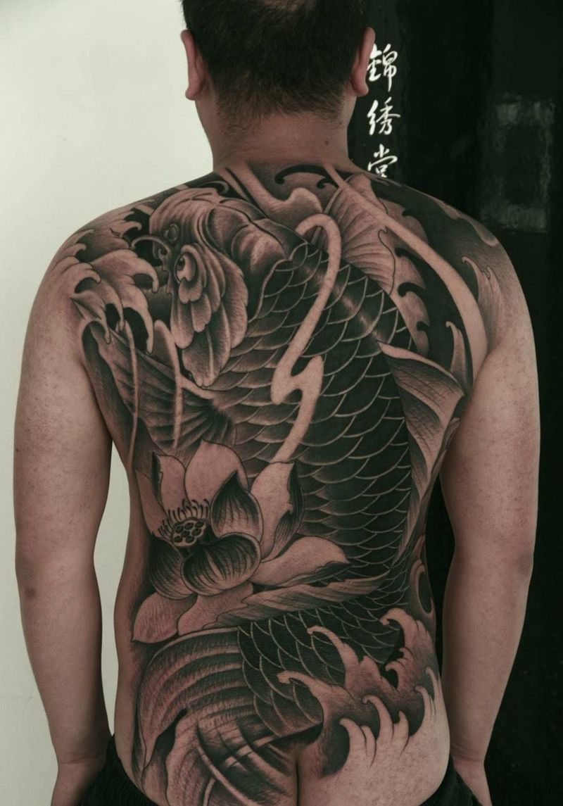 当前位置: 首页 >云南省曲靖市纹身店-哲刺青纹身图案>满背招财鱼纹身图片