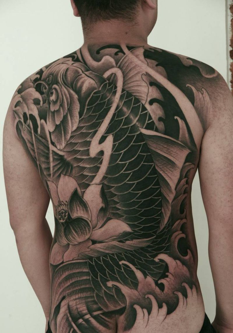 当前位置: 首页 >云南省曲靖市纹身店-哲刺青纹身图案>满背招财鱼纹身图片
