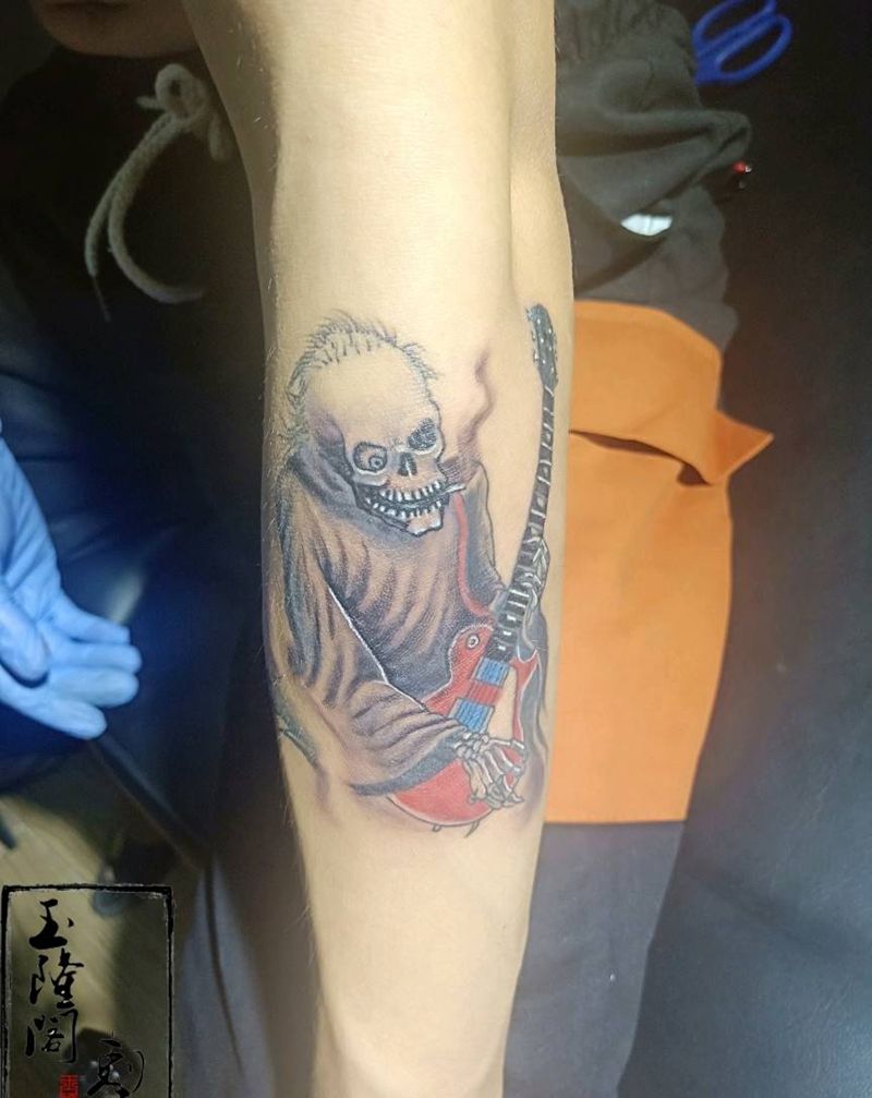 当前位置: 首页 >云南省曲靖市纹身店-8号刺青纹身图案>骷髅弹吉他纹身图片