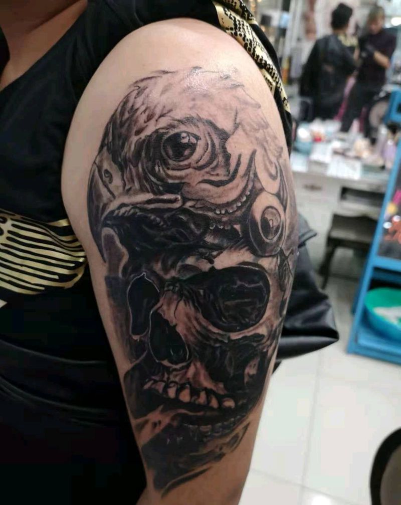 当前位置: 首页 >云南省曲靖市纹身店-8号刺青纹身图案>欧美鹰与骷髅纹身图片_手臂欧美写实纹身图案