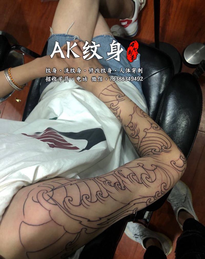 浪臂全手绘纹身图片_手臂新传统老传统纹身图案