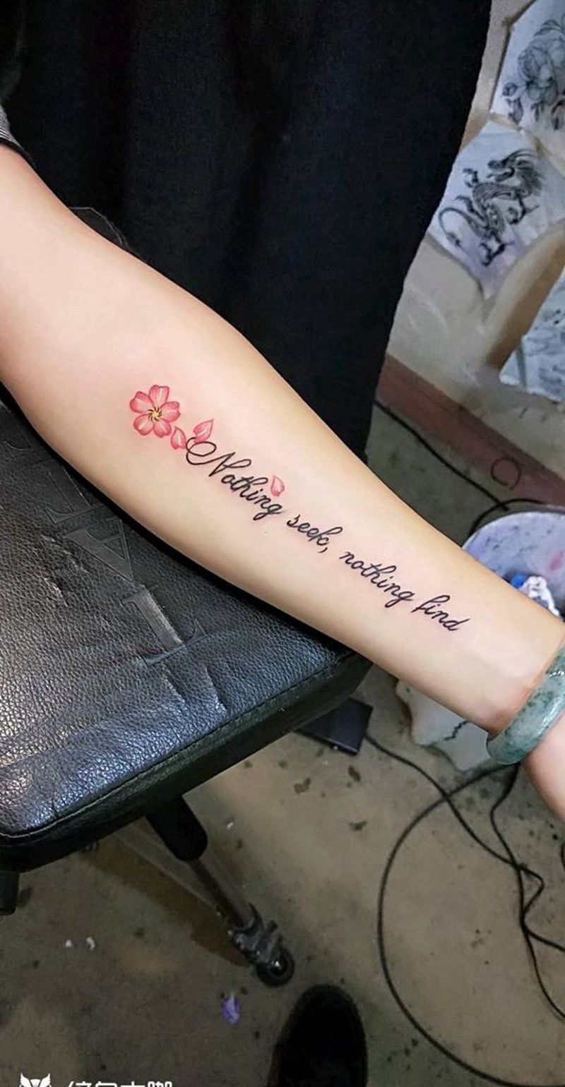 当前位置: 首页 >云南省曲靖市纹身店-AK纹身纹身图案>英文樱花纹身图片_手臂传统字符植物成品纹身图案