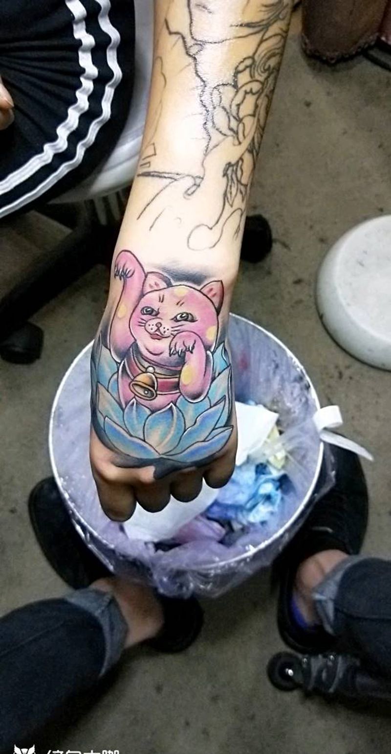 当前位置: 首页 >云南省曲靖市纹身店-AK纹身纹身图案>招财猫花手纹身图片_手部传统动物成品纹身图案