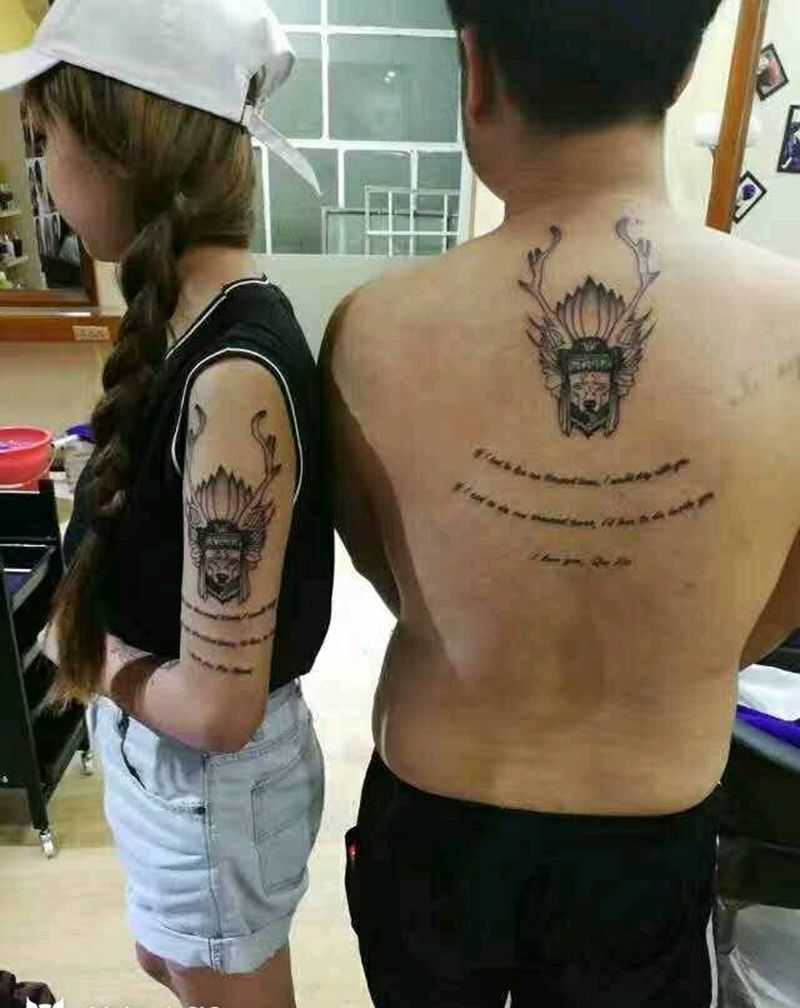 前几年做的鹿头情侣纹身纹身图片_背部手臂传统几何动物成品纹身图案