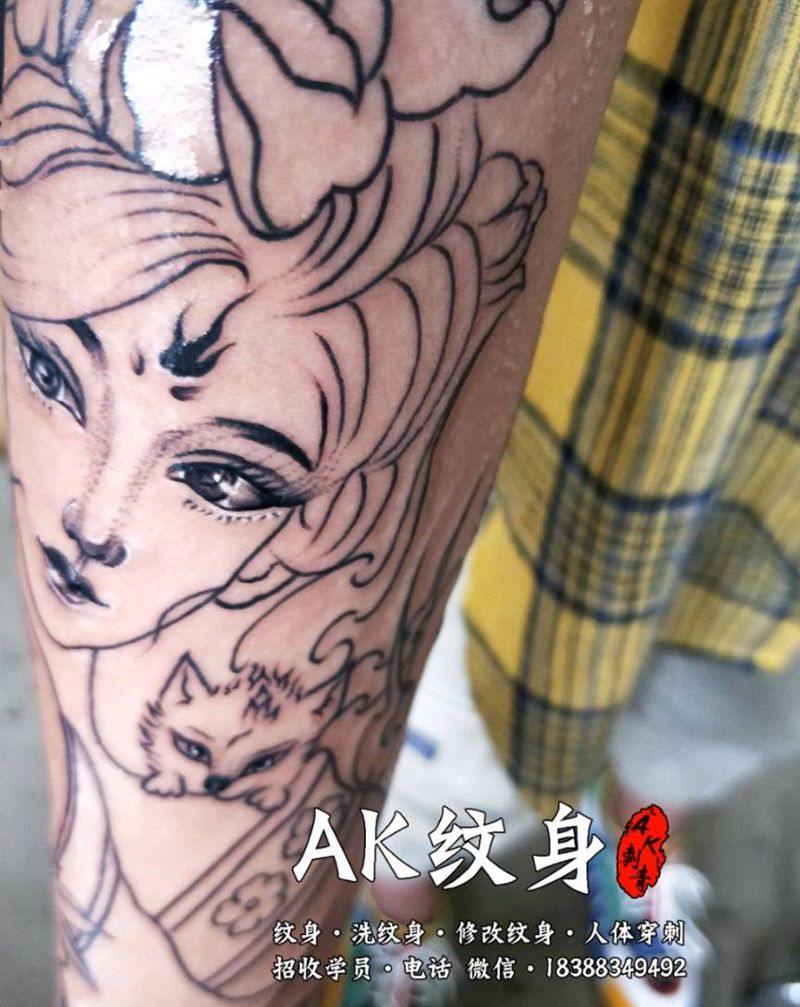 当前位置: 首页 >云南省曲靖市纹身店-AK纹身纹身图案>艺妓线条纹身图片_手臂新传统纹身图案