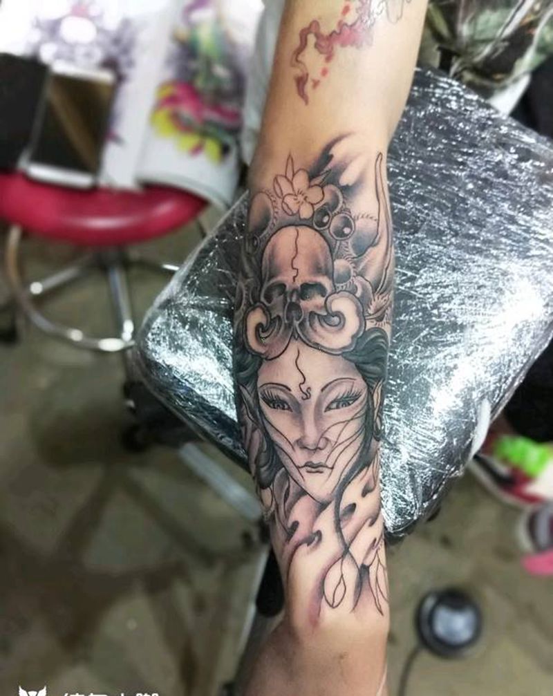 艺妓式花旦纹身图片_手臂传统人物鬼神成品纹身图案