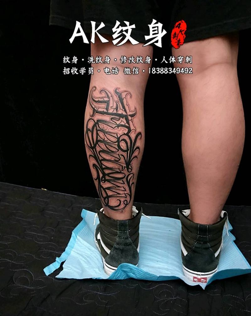 当前位置: 首页 >云南省曲靖市纹身店-AK纹身纹身图案>花体字未完成纹身图片_腿部新传统花体字纹身图案