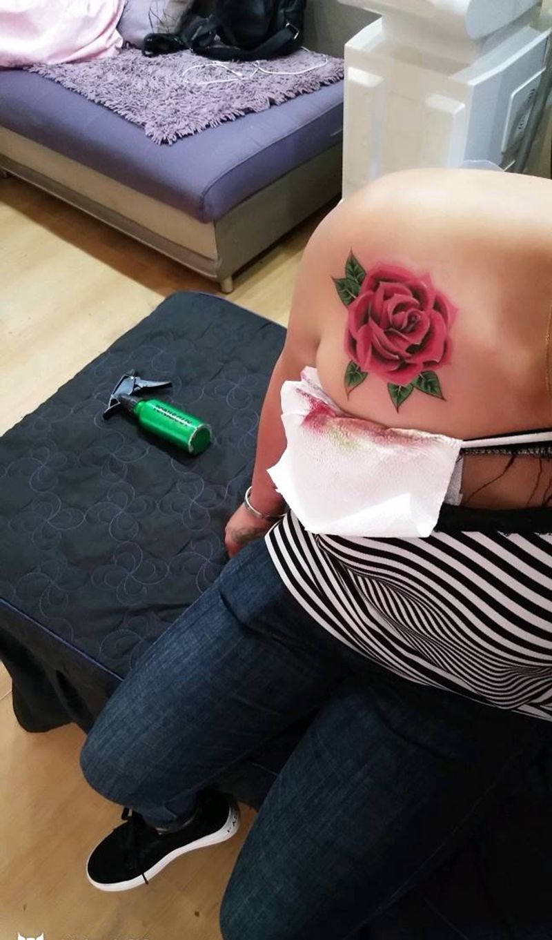 玫瑰花纹身纹身图片_胸部新传统欧美写实纹身图案