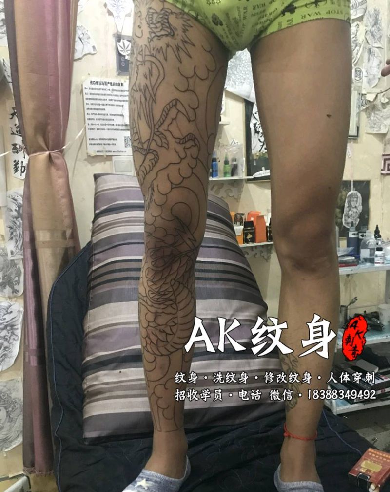 • T网红王老大花腿龙纹身图片_腿部新传统纹身图案