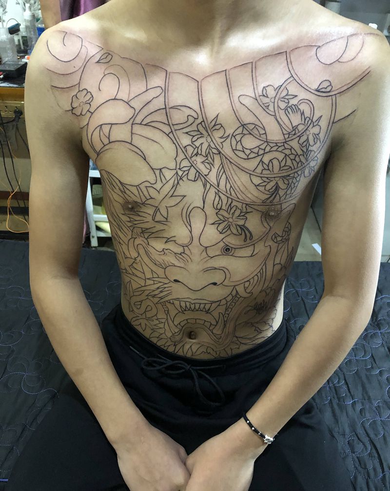 般若花肚纹身图片_胸部腹部老传统新传统纹身图案