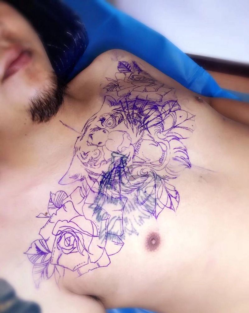 • 男性大花胸_42张优秀的男性大花胸纹身图案图片