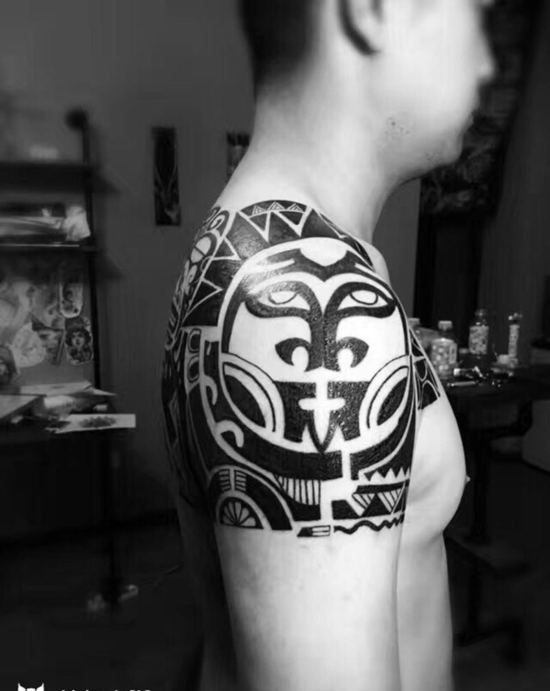 • 纹身吧推荐的披肩图腾半胛纹身图案作品展示