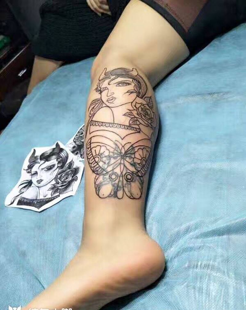 • T包小腿吹火男+阿多福纹身图片_腿部老传统新传统吹火男阿