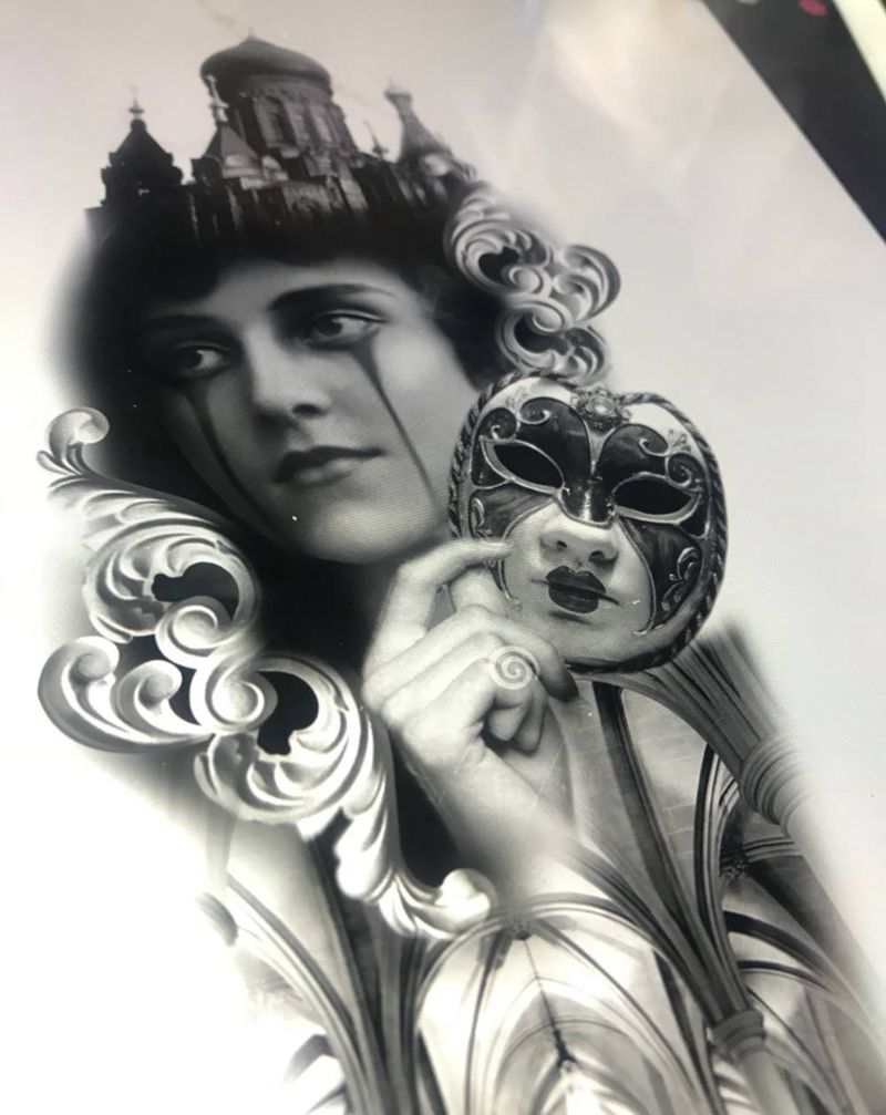 当前位置: 首页 >云南省玉溪市纹身店-梵刺纹身工作室纹身图案>面具下的哭泣者纹身图片