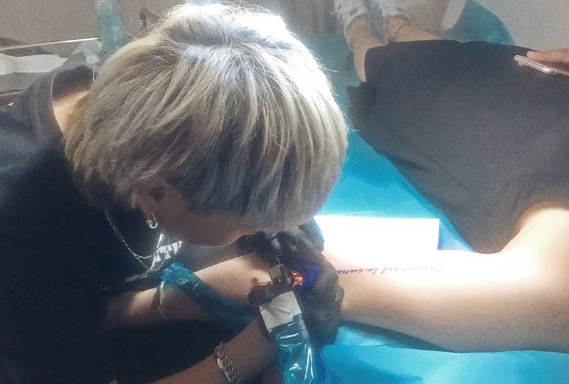 当前位置: 首页 >云南省玉溪市纹身店-梵刺纹身工作室纹身图案>学员做的小字纹身图片_手臂纹身图案