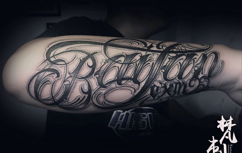 当前位置: 首页 >云南省玉溪市纹身店-梵刺纹身工作室纹身图案>奇卡诺花体字纹身图片_手臂纹身图案