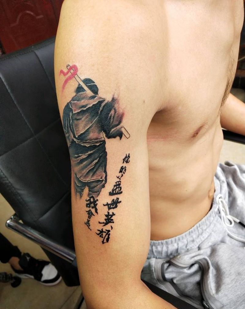 当前位置: 首页 >云南省保山市纹身店-新刺客纹身工作室纹身图案>我会是你的盖世英雄纹身图片_手臂纹身图案