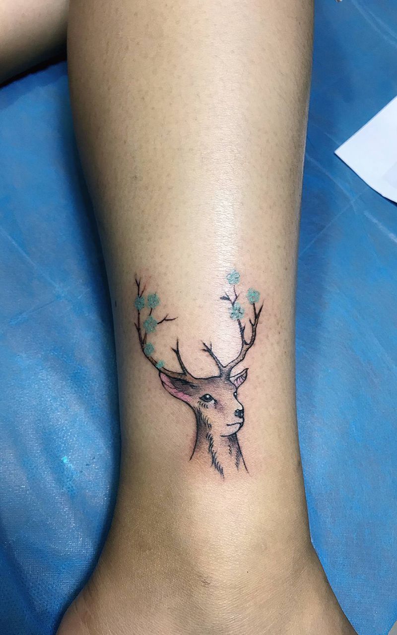 麋鹿纹身图片_脚部手部鹿纹身图案