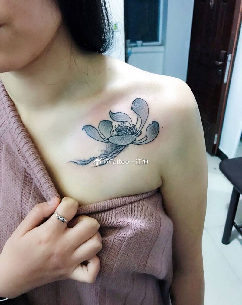 • 女性大花胸纹身_43张霸气漂亮的女性大花胸纹身图案作品