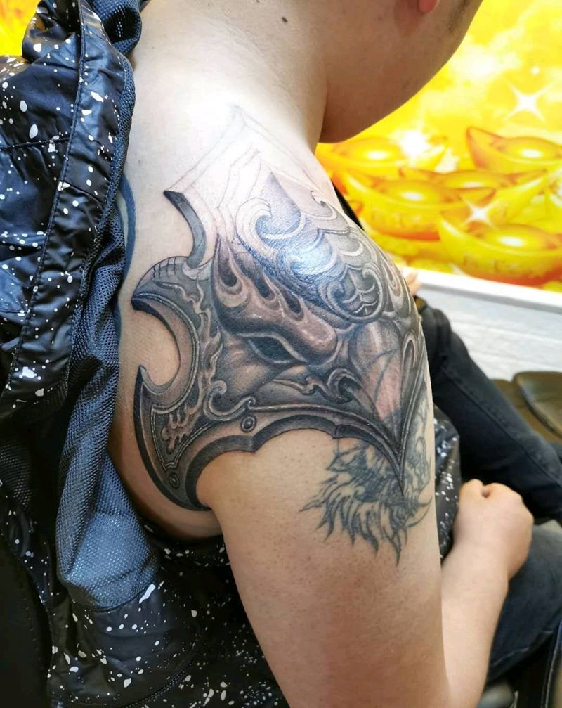 • 纹身吧推荐的披肩图腾半胛纹身图案作品展示
