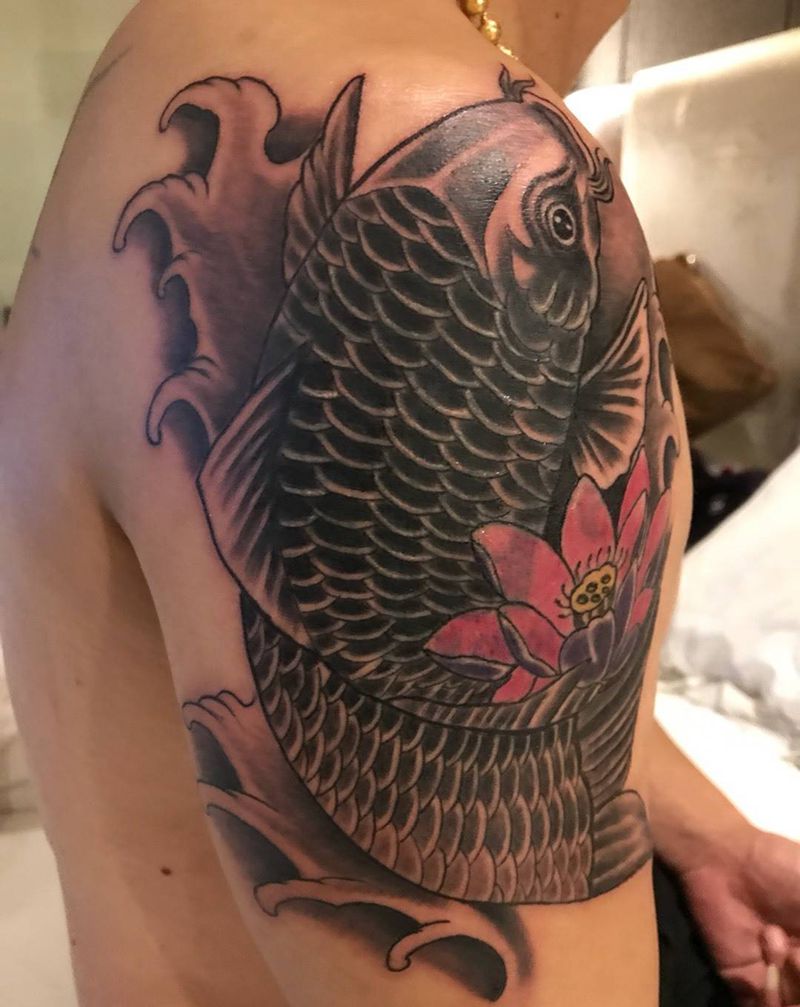 传统鲤鱼遮盖纹身图片