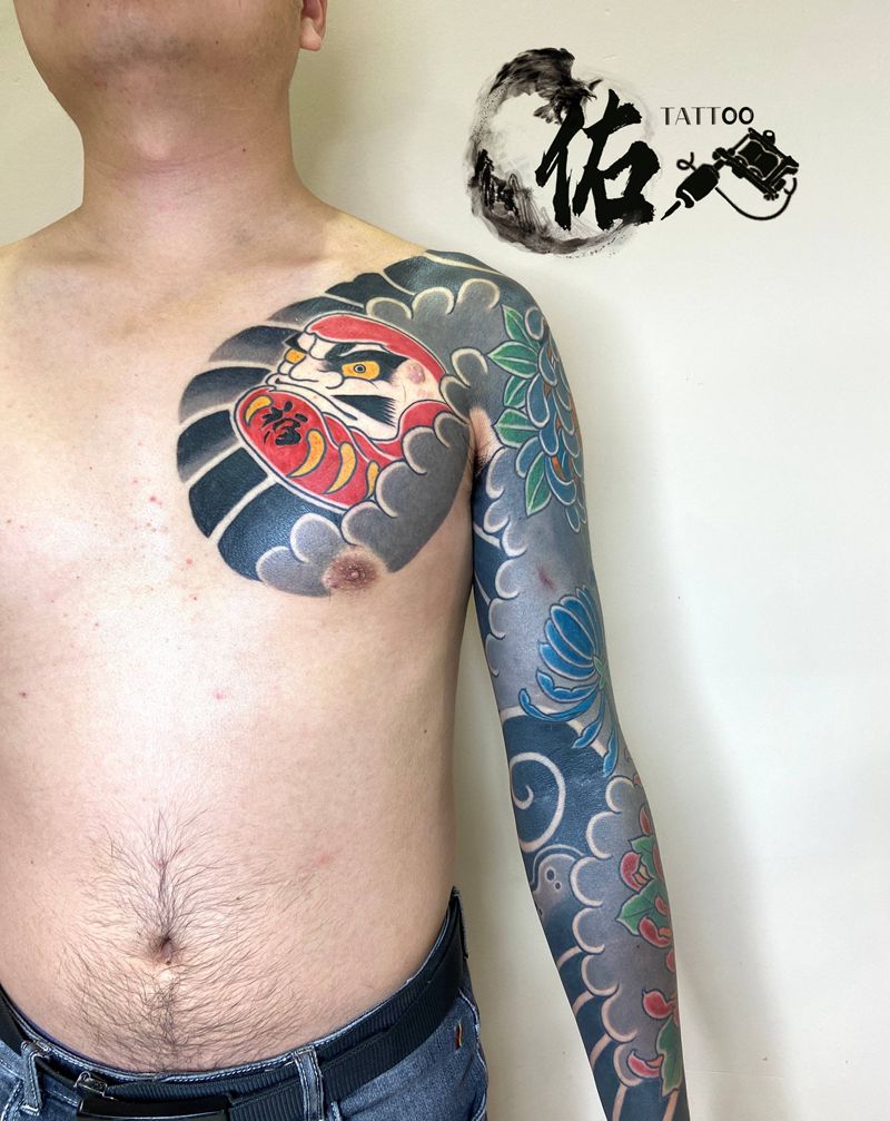 当前位置: 首页 >云南省红河哈尼族彝族自治州纹身店-左右刺青工作室纹身图案>老传统 菊花 达摩蛋纹身图片_手臂老传统纹身图案