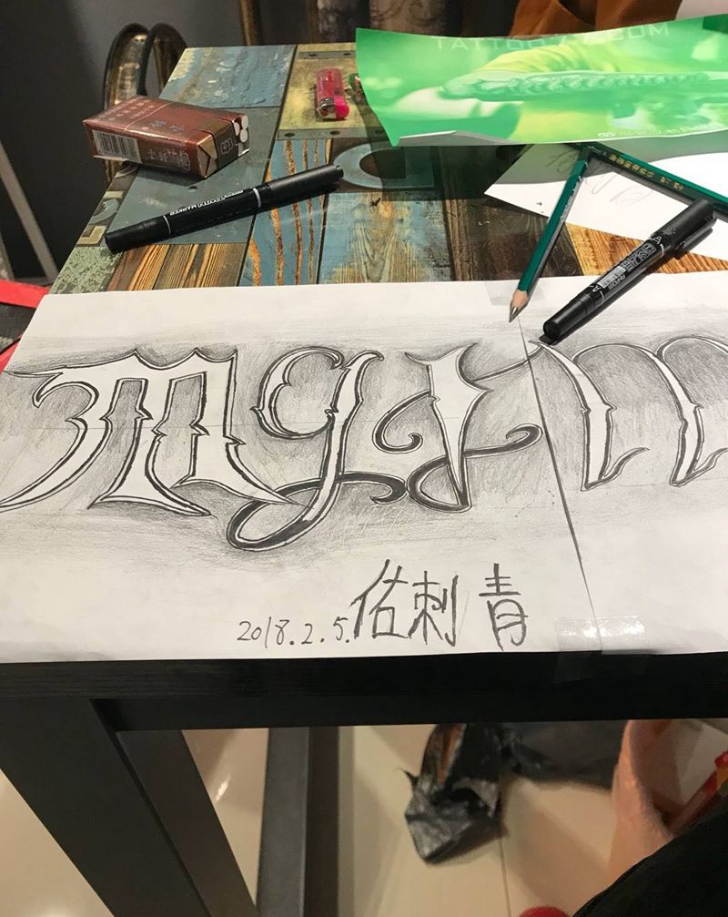 当前位置: 首页 >云南省红河哈尼族彝族自治州纹身店-左右刺青工作室纹身图案>奇卡诺字体 原创纹身图片