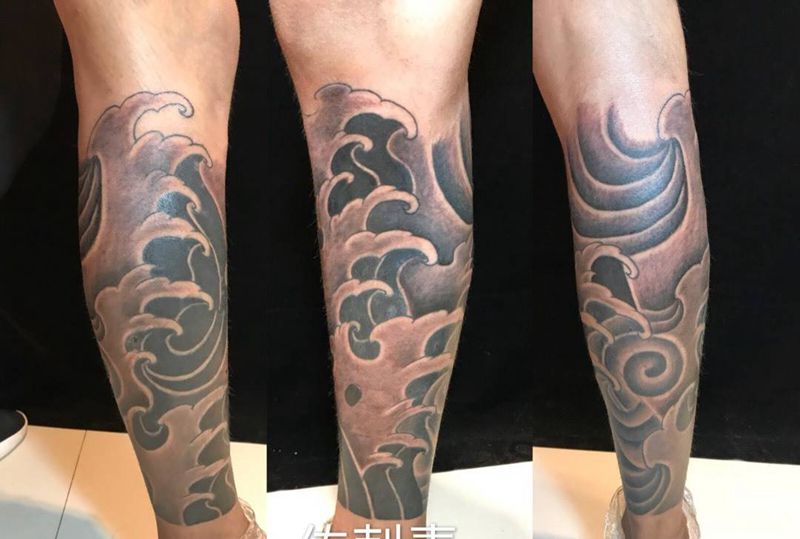 当前位置: 首页 >云南省红河哈尼族彝族自治州纹身店-左右刺青工作室纹身图案>浪花 小腿纹身图片
